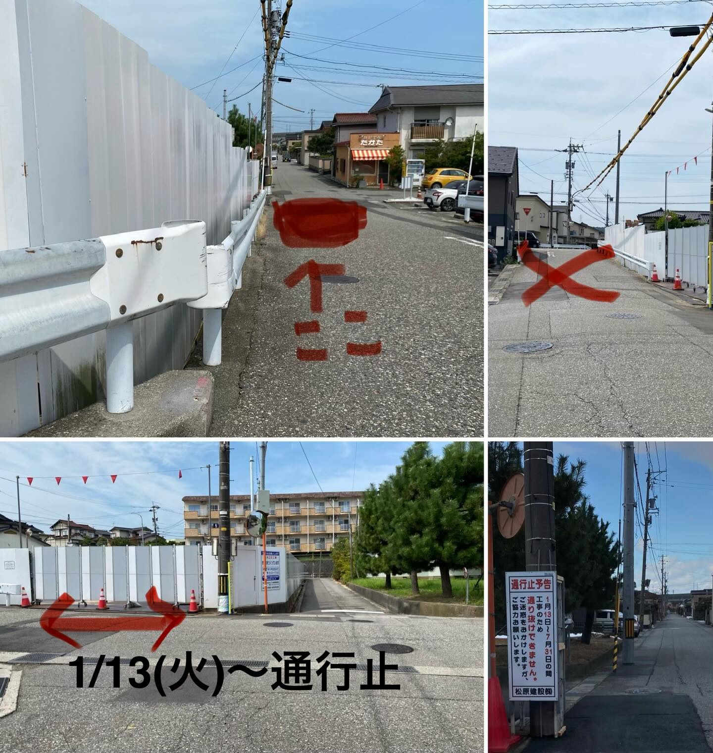 2026.1.9 公共工事による通行止めの予告です。期間がとても長く1/13〜7/31まで。