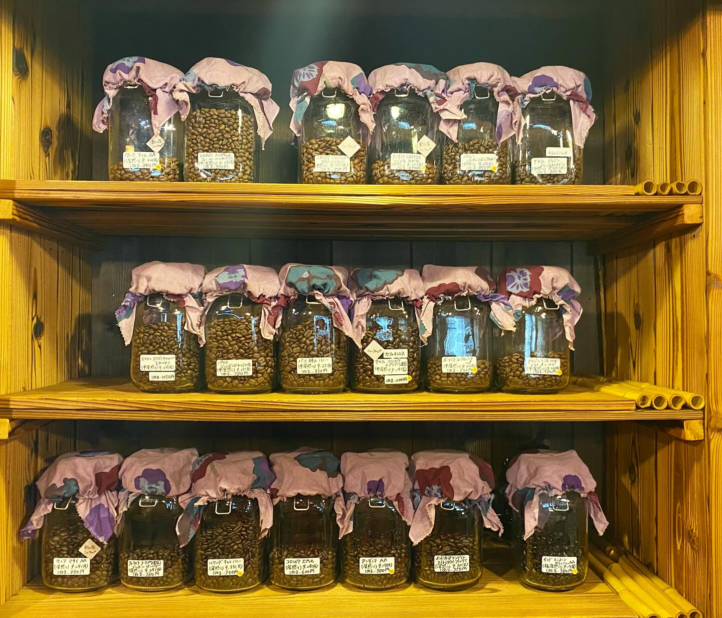 ご予約の珈琲を焼いて準備いたしました。珈琲ラインナップも揃ってきました。お得になっている銘柄もございますので、お好みに合いましたらラッキーです。
